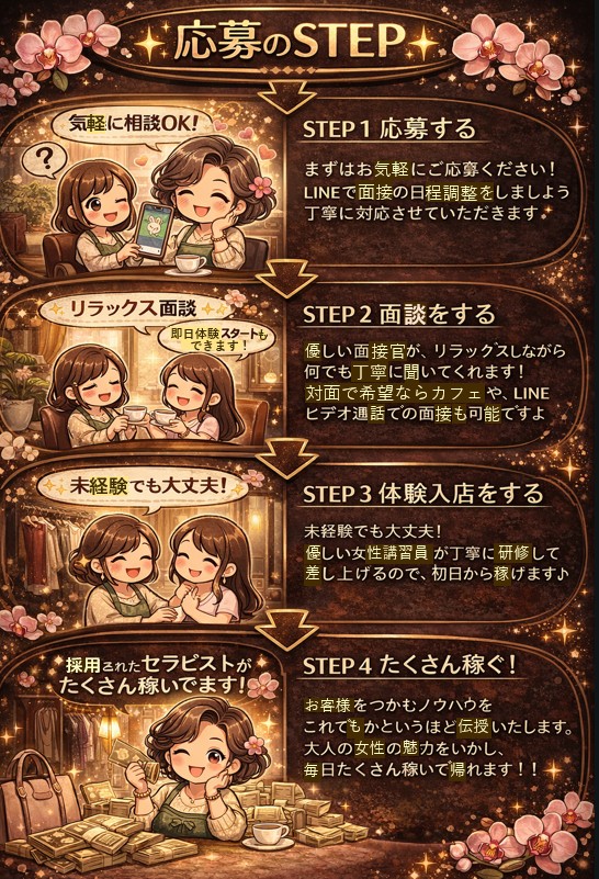 30歳以上の女性歓迎。経験・未経験問わず。日給3万円以上可能・安心の完全個室待機。